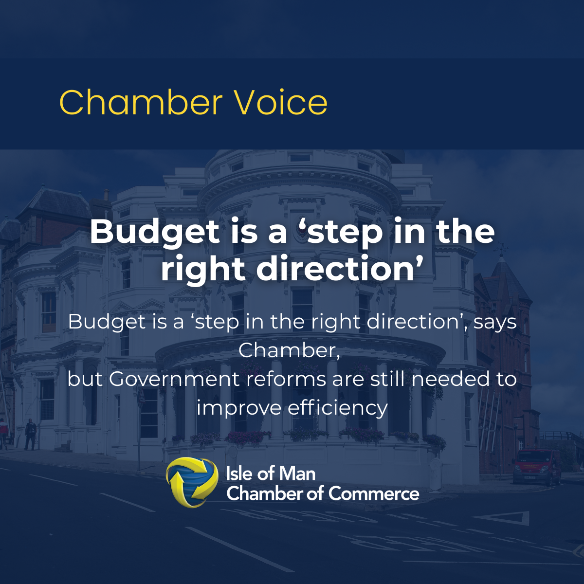 The Island’s leading business network recognises the challenges facing the new Treasury Minister having been in post for only a few weeks. Chamber welcomes a number of positive measures that were announced in the Budget, including: