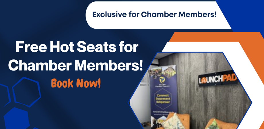 Chamber members can now book free hot seats at Launchpad — ideal for remote workers or those needing a change of workspace. Includes fast internet, excludes coffee/printing.